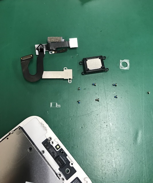まずは、割れているパネルからインカメラケーブル、イヤースピーカーを取り外していきます。