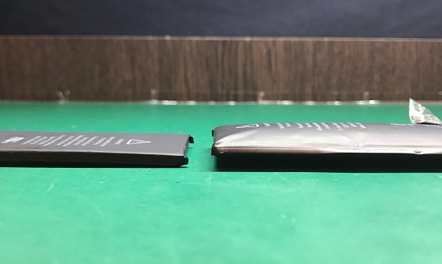 通常のバッテリーと並べてみると膨張しているのがよくわかります。