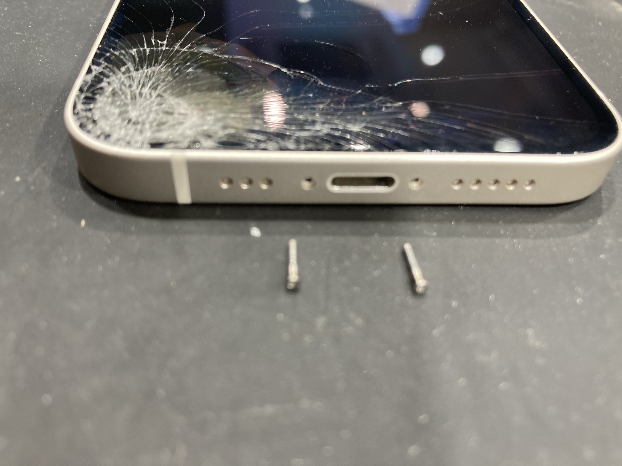 画面にひびが入っており、表示も真っ黒の状態です。
