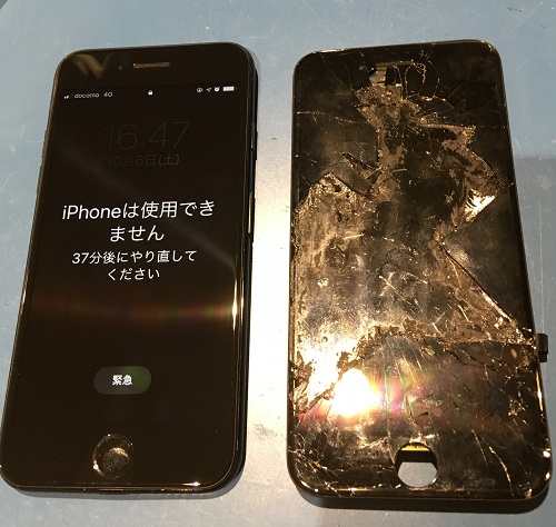 さて、今日ご紹介するiPhoneは割れたまま使っていたけれどいよいよタッチがダメになってしまって、、、というiPhone7です。