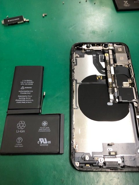 さてさて、連休前のこの時期は例年駆け込み需要でバッテリー交換の問い合わせが増える時期でもあります。そんな中、減りが早いのではなく、起動しなくなってしまったiPhoneXが持ち込まれたのでご一緒に見てまいりましょう!