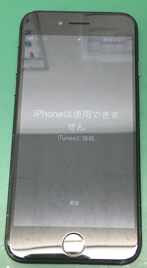 そして、ゴーストタッチのせいでパスコードを規定回数間違ったようで、「iPhoneは使用できませんiTunesに接続」の画面となっていますので、データを取得することが出来ません。