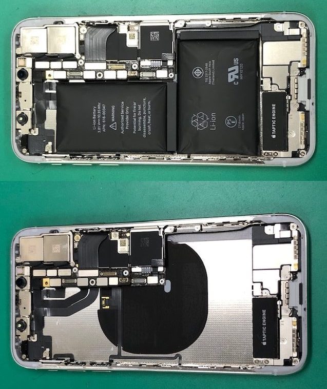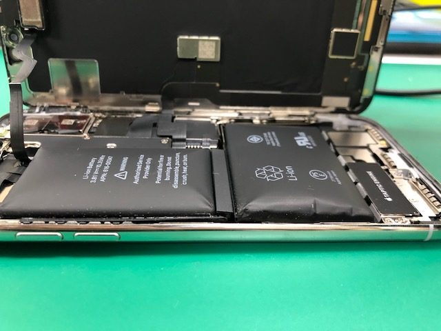 iPhoneXはいままでのバッテリーと異なり、2つの電池がつながった形状なので