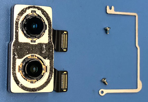 iPhoneXのリアカメラはこのような細長いプレートで押さえられています。