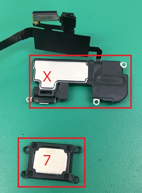 iPhoneXで変わった場所といえば、ホームボタンが無くなった事と、内側のカメラユニットでFaceIDが使用出来るようになった事が主に取り上げられていたかと思いますが、実は耳元のスピーカーであるイヤースピーカーのサイズも随分大きくなっています。