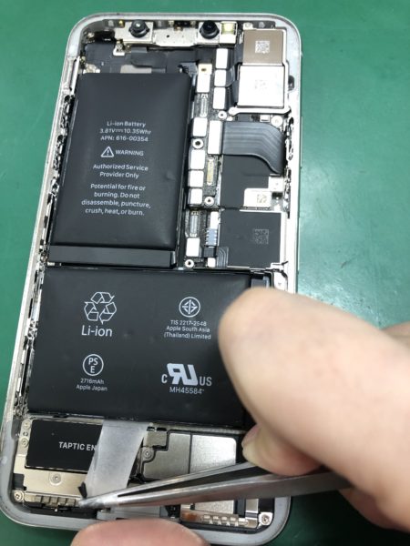 iPhoneXはバッテリーが二つ繋がったタイプとなっております。