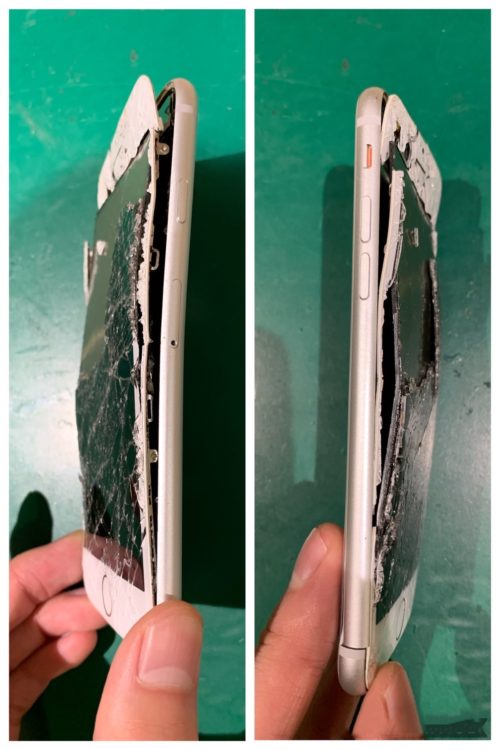 今回の修理は車に轢かれてボロボロの状態のiPhoneの修理依頼を受けました。