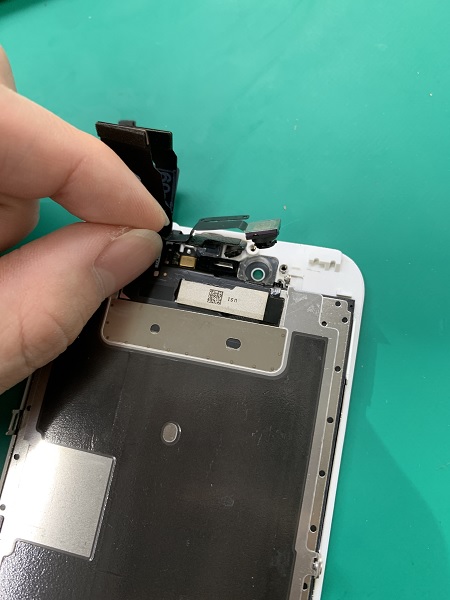 高性能なiPhoneのインカメラ部分のパーツを慎重に取り除きます。