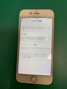 「設定」の「バッテリー」でバッテリー状態を見てみると、最大容量が79%と出ています。