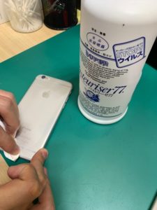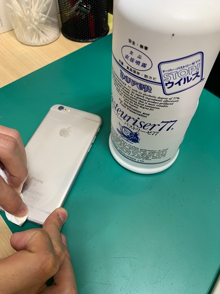 修理時には、時間に余裕がある時は特に、こんな風に端末もしっかりクリーニングしています。ケースやカバーを使っていると、徐々にたまる汚れにはなかなか気づけないんですよね。