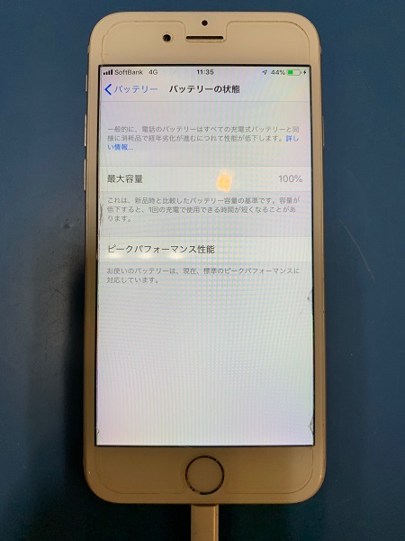 バッテリーが劣化しています、というメッセージは出ていませんが、結構消耗している状態です。
