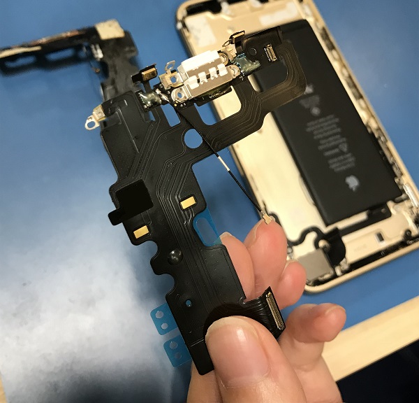 さて、このブログでは、実際にお客様が持ってこられたiPhoneの修理作業をお伝えしています。私の初稿は、充電コネクタの接続不良の修理でいきたいと思います。