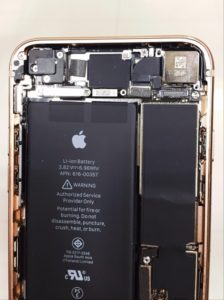 こちらがiPhone8の内部。右上に見える正方形のパーツがリアカメラです。これを新しいものにチェンジ!作業自体はいたってシンプルです。