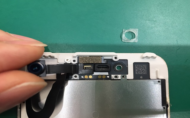 インカメラケーブルを起こすことでイヤースピーカーが露出しますので簡単に取り外せます。