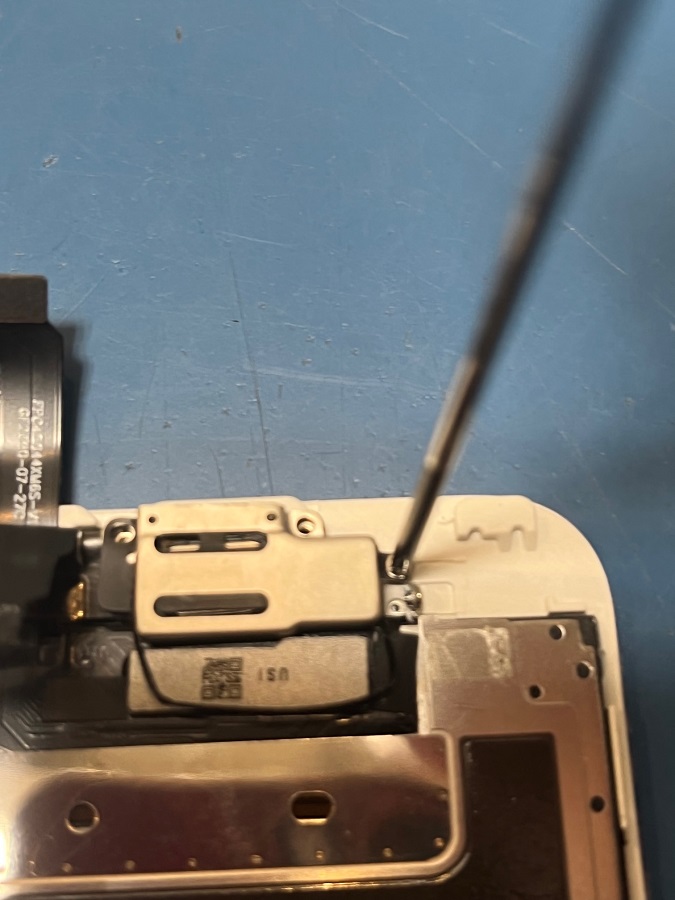 近接センサーケーブルを保護するメタルカバー、センサーケーブル、イヤースピーカーを外してあります。(スピーカーはケーブルのかげに隠れてしまってます)