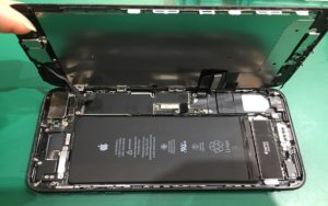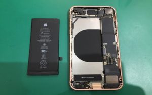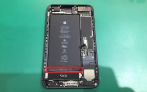 iPhone8のバッテリーシールはiPhone6/7に比べて強力になって剥がしづらいですのでバッテリーを損傷させないように慎重に修理を行いました。