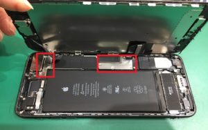 バッテリーの下にはワイヤレス充電に関係しているパーツがありますのでその部分にも気を付けながらの作業になります。