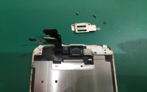 iPhone6は移植するパーツが多くパーツ自体も細かいので、取り外す際は傷つけないように気を付けながら修理しました。