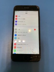 パネル角を中心にガラス割れがあり、画面表示も粗くなっている状態です。
