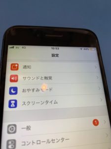 特に一番上の「設定」の文字が、通常のものより粗くなっているので、欠けているように見えます。ちなみに、タッチ反応は正常に出ていました。