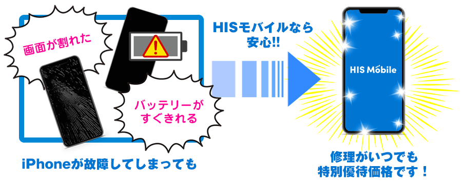 HISモバイルユーザーには、全国のiPhone修理アイサポ店舗での修理料金を特別優待価格でご提供します。