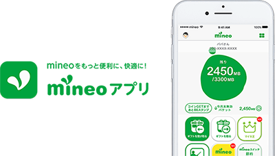 ご来店時、mineoアプリログイン後のホーム画面をご提示ください。