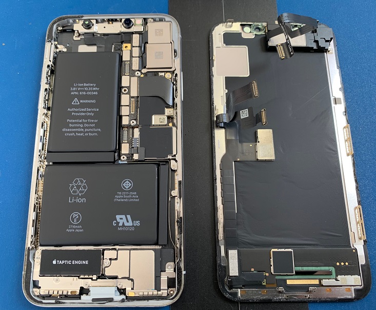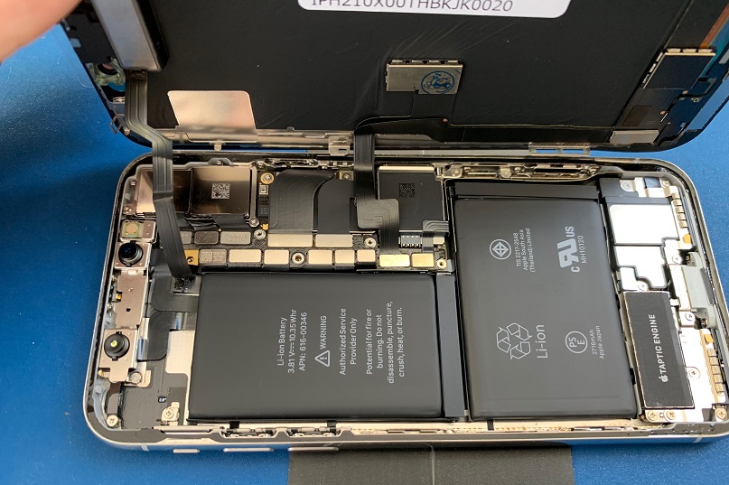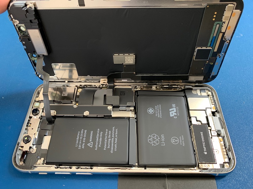 iPhoneXは従来の機種に比べバッテリーが大きくなっており、基盤やコネクタが一箇所に集まっている構造になっています。