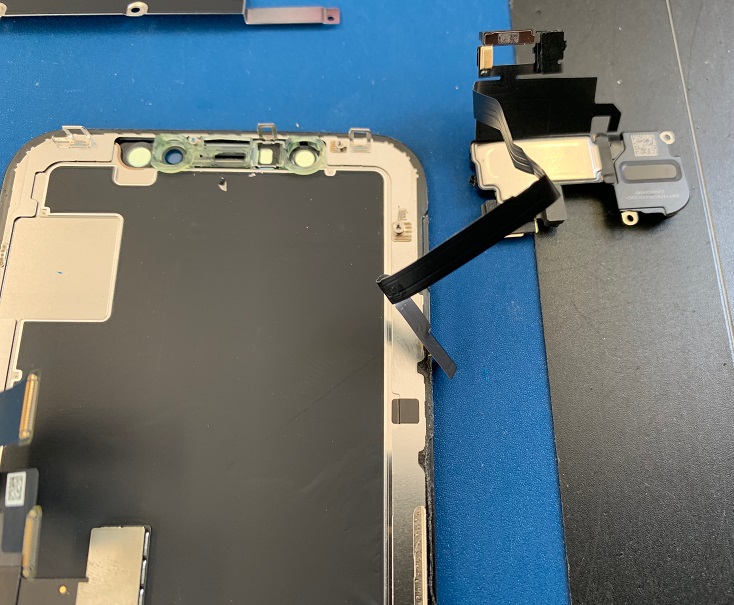 以前のiPhoneだとインカメラやセンサーの他、ホームボタンも移植していたのですが、iPhoneXはホームボタンが無いためセンサー類のみ移植します。