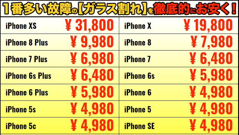 こちらの料金で修理を承っております。ご来店、お待ちしております。