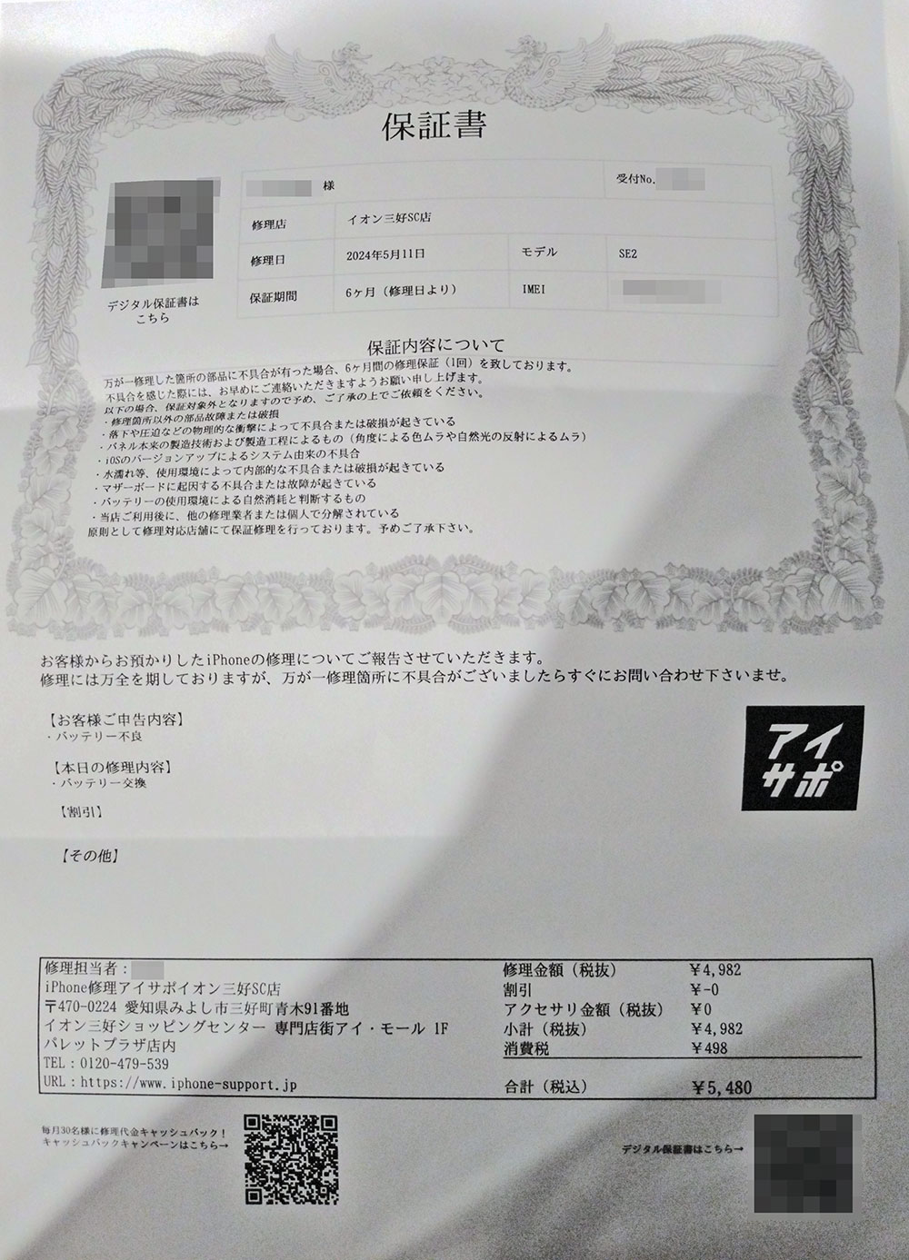 iPhone修理アイサポイオン三好SC店