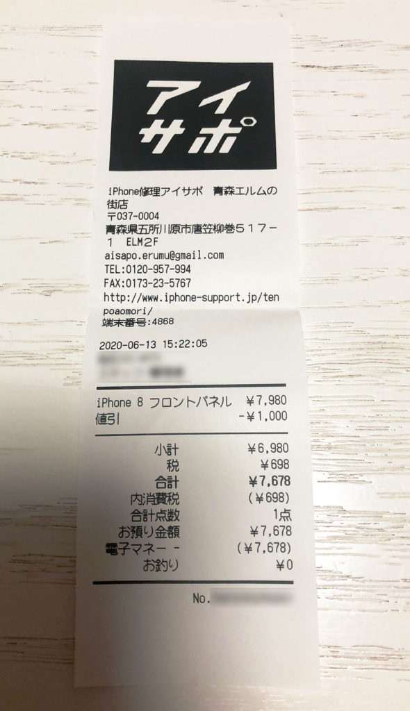 純正のアップルストアだとフロントパネルの修理は2万円くらいかかると聞いていたので、その半額以下で修理して頂くことができました。