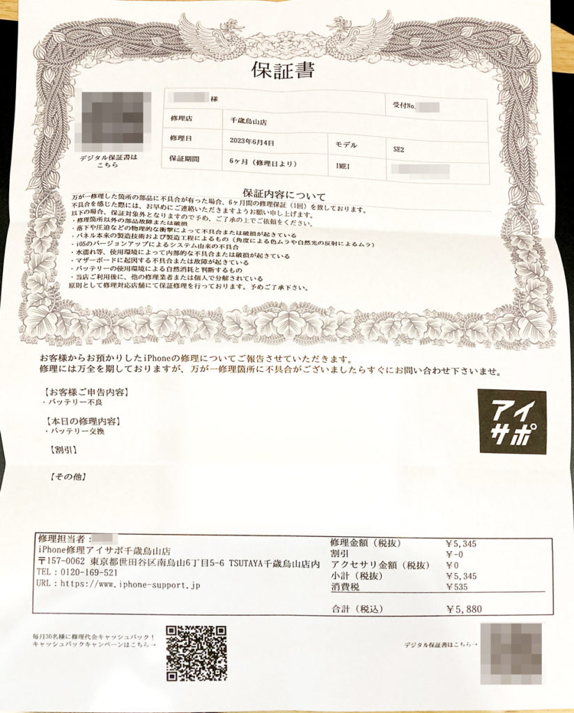 正規代理店と比較すれば安いと感じました。また、修理代金がウェブ上で公開されており、安心できる点も良かったです。