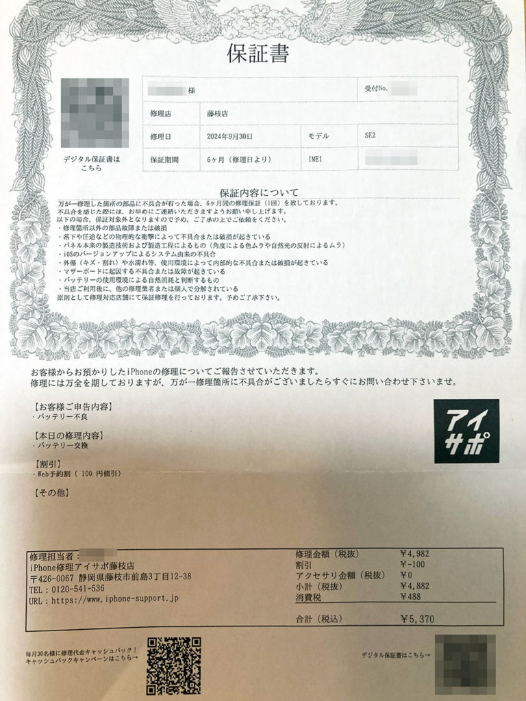 保証書にある修理代金キャッシュバックキャンペーンはありがたいです。