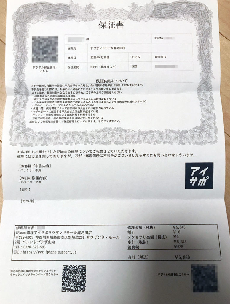 購入より数年以上が経過しており、バッテリーが移動を伴ったりして通信容量が大きい時は半日と持たなくなっていました。バッテリー性能も80%程度となっていたため、替え時であると判断して、バッテリーの交換をお願いしました。