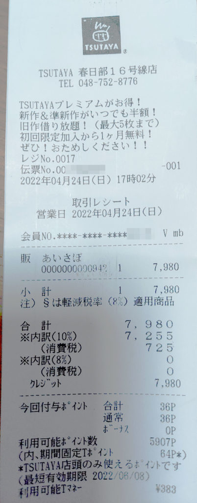 近所のドラッグストアーやスーパー等に買い物に行きました。それでも、時間があったため、TSUTAYAの中の店舗のため、本の吟味をして、購入して過ごしました。