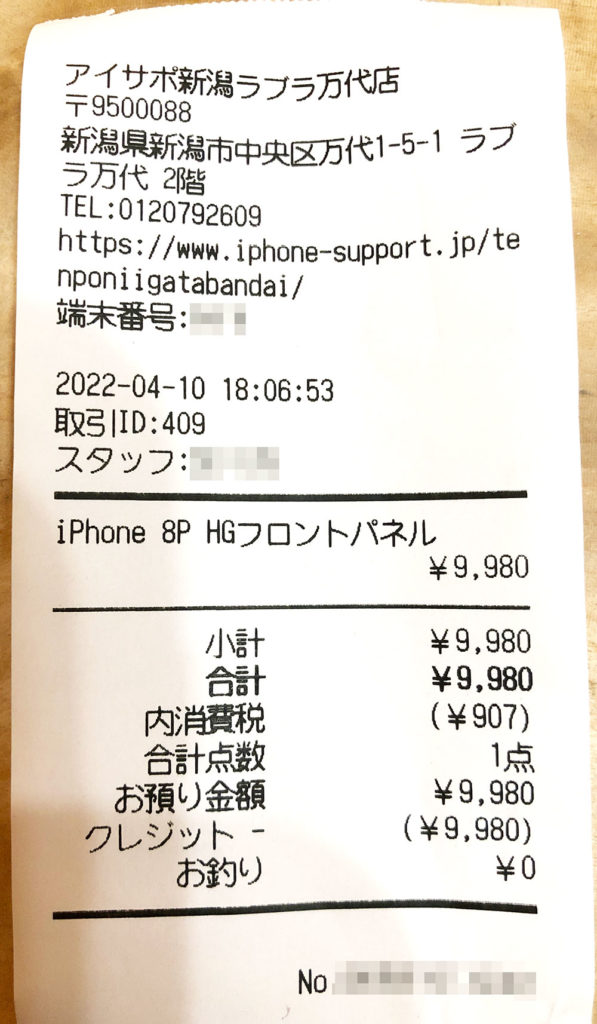 今回の店舗は接客の店員さんが親切で丁寧だったので周りの人におすすめしたいと思います。一万以内で安い料金なのに、1時間もかからずに待ち時間も少なく修理できるし、仕上がりも良かったのでキャリアの修理だと時間もかかるのでアイサポをおすすめしたいと思います。あと、半年の保証書がちゃんと書面でもらえるのはとても安心できるポイントだと思います。そして、友人紹介カードもらえたので、仲良しのお友達に渡したいとました。