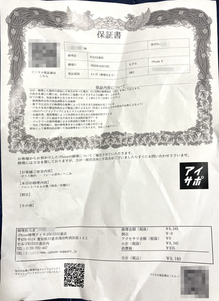 保証サービスについてはいいと思います。他には、よそのお店にあったのですが、指定のアプリを入れたり会員登録すると値引きがされるというのも、料金を安く抑えたい人にとってはいいサービスだと思ったので、そういうのはあってもいいかもと思いました。