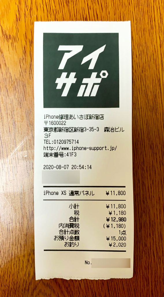 ウェブサイトで他店の値段もリサーチしましたが、正規店に比べると、安いと感じました。特にアップルの保証期間を過ぎていて、保険が効かないので、正規店で取り替えると2万円以上するので、それに比べると、アイサポは、ほぼ半額くらいで修理してもらえるので、安いと思いました。