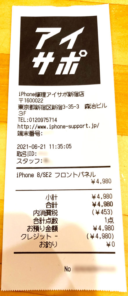店内に入る入り口のところで、アイサポのオリジナルの音楽がかかっており、入りやすい雰囲気があったのでそこも良かったと感じました。店内の清潔感も感じることができたので、安心して修理を任すことができ、来店して良かったです。