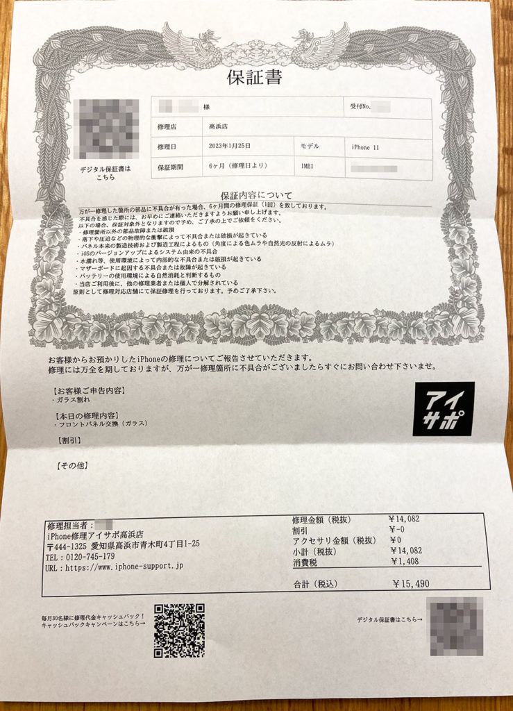 他店では学割やシニア割、SNS割がありました。自分自身はここに当てはまりませんでしたが、もしママ割みたいに割引があったら嬉しいなと思いました。保証サービスは6ヶ月じゃなくて出来れば1年保証くらい長めにして欲しいです。
