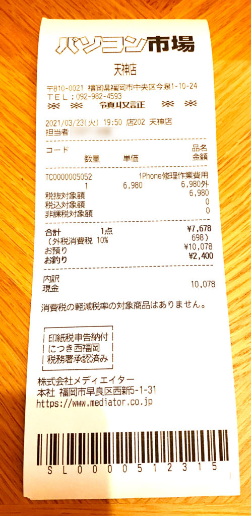 修理時間も60分以内というところに惹かれました。フロントパネルの交換は50分位とのことでしたが、実際は25分位でした。